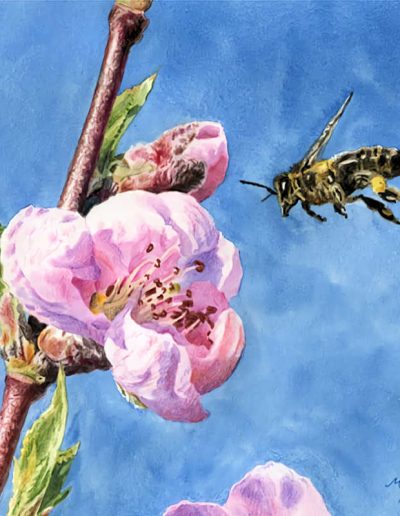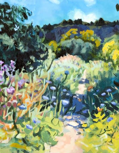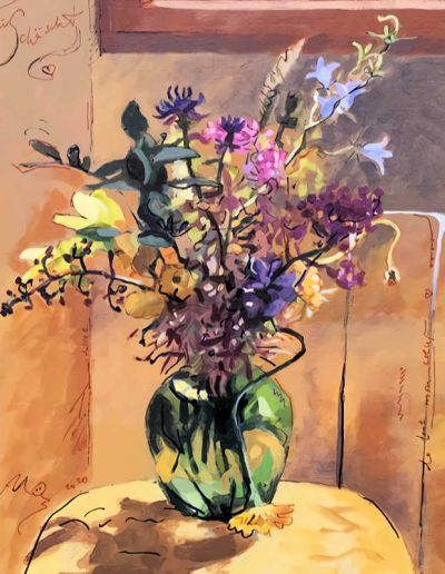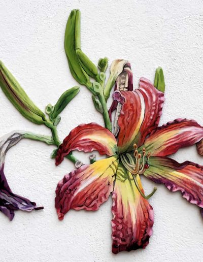 In her recent work she reconnects with the theme of nature. “Liveliness, beauty, diversity, strength and harmony are qualities of nature that she says she want to express and communicate in her works.” It is the ambiance of a landscape as much as the detail of a flower or an animal that fascinates and inspires her.