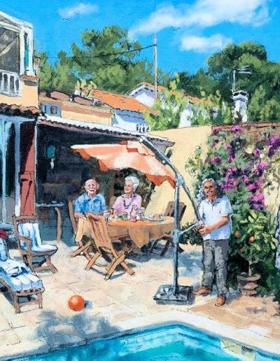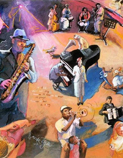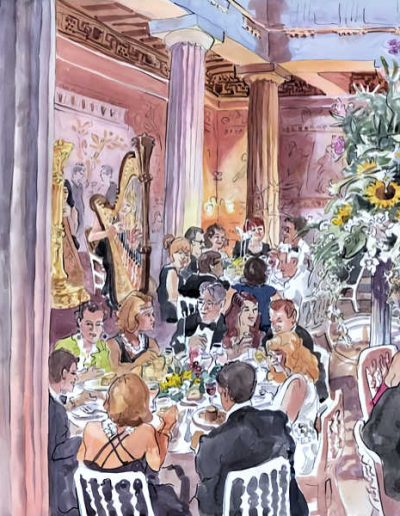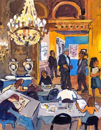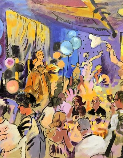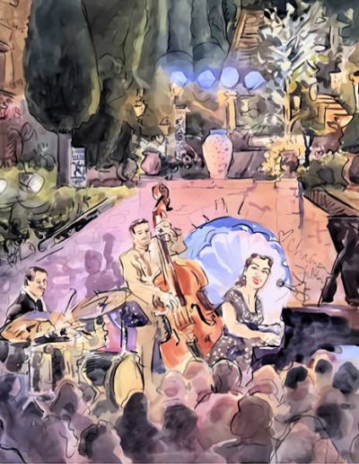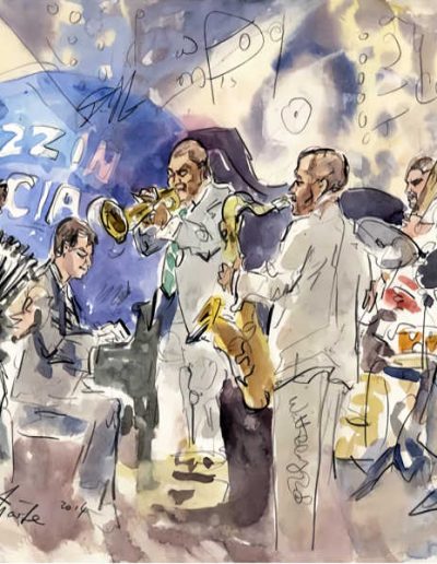 Märta is renowned for her captivating live paintings, a unique form of artistry where she creates stunning works in real-time at various public settings. Specializing in capturing the essence of concerts and events, Märta’s live paintings beautifully encapsulate the ambiance and energy of the moment. Whether it’s the dynamic performance of a jazz band or the cultural vibrancy of a gathering, Märta skillfully uses watercolors or acrylics to bring these scenes to life on canvas. Her live painting sessions add an interactive and performance aspect to the creation process, engaging the crowd and enriching the overall experience of the event.